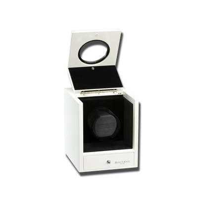 Il Carica Orologi - Glamour Bianco è un accessorio elegante e funzionale, progettato per gli amanti delle montre di lusso. Realizzato in legno lucido, questo rotatore tedesco rappresenta la fusione perfetta tra design sofisticato e lavorazione artigianale di alta qualità.