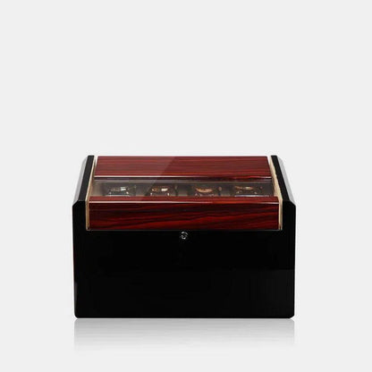 Il suo disegno impeccabile esalta i dettagli del legno di Macassar nero, donando un aspetto distintivo a qualsiasi ambiente. Internamente, il velluto protegge i vostri orologi, prevenendo graffi e accumuli di polvere. Pensato per soddisfare le esigenze dei clienti più esigenti, mantiene la vostra collezione non solo al sicuro ma anche ben presentata.