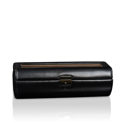 Le sue dimensioni impeccabili con un'altezza di 10 cm, larghezza di 32,5 cm e lunghezza di 12,5 cm gli consentono di contenere comodamente fino a sette orologi. Questo lo rende il compagno ideale per chi possiede una collezione di orologi preziosi e desidera mantenerli in condizioni ottimali. Il peso di 900 grammi garantisce stabilità senza risultare ingombrante.