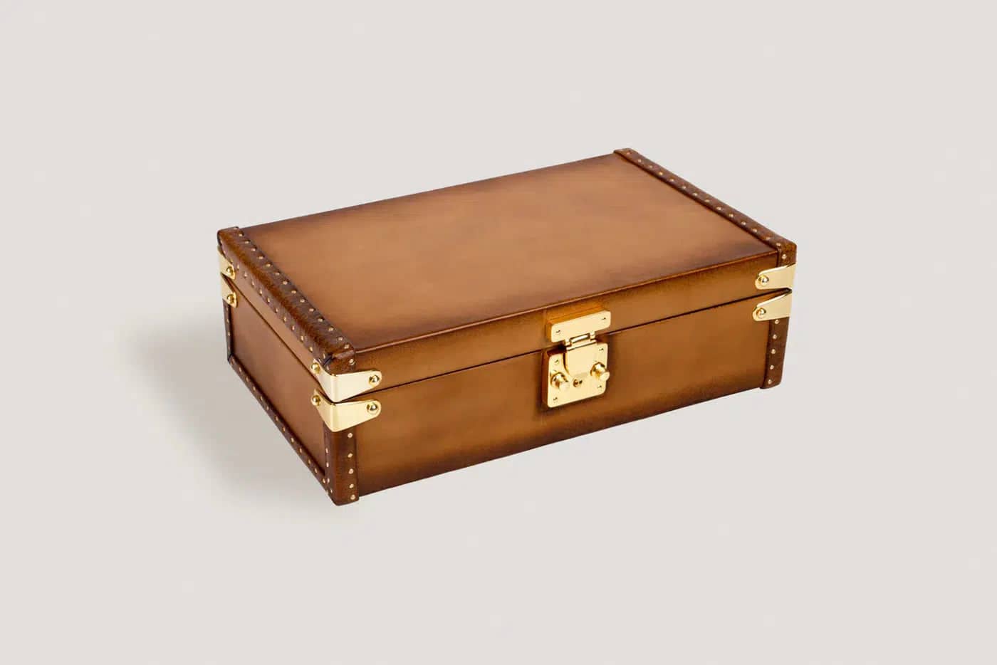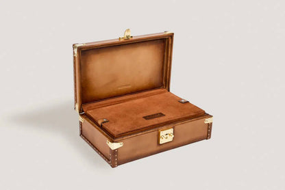 Compatta e pratica, la Scatola Petra Camel è perfetta sia per l'uso domestico che per i viaggi. Che tu voglia esporla come un pezzo d'arredamento sofisticato o trasportarla in totale sicurezza, questa scatola è una scelta versatile per ogni collezionista di orologi. Un mix perfetto di artigianato tradizionale e design moderno.