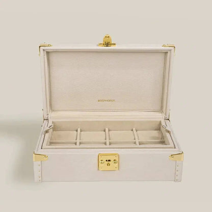 La Porta Orologi Petra Togo Crema Leggera è un'opera d'arte realizzata per custodire con eleganza i vostri orologi automatici. Realizzata con l'eccellente pelle Togo all'esterno e l'interno in pelle scamosciata, questa scatola è il simbolo dell'artigianato di lusso. Gli 8 morbidi cuscini assicurano che ogni orologio abbia una posizione sicura e ben protetta.